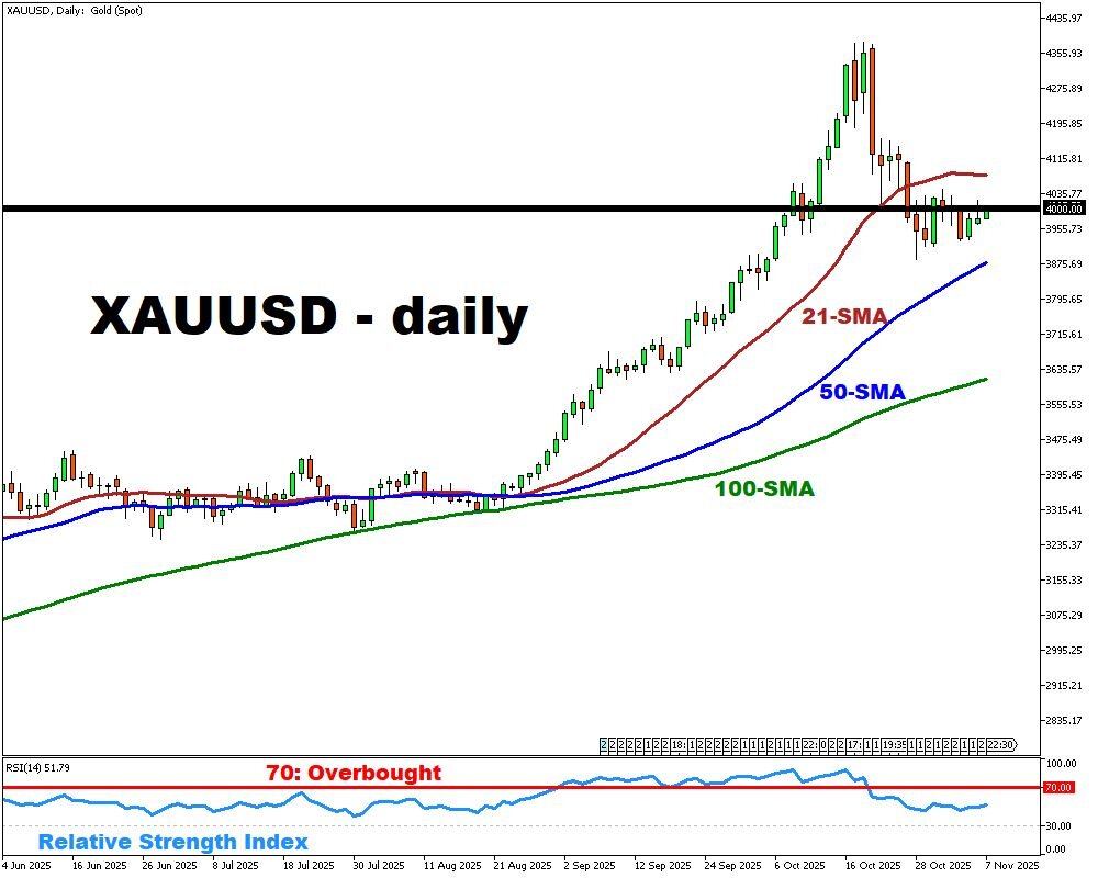 • Gold has moved above ~$4,000/oz amid mixed signals