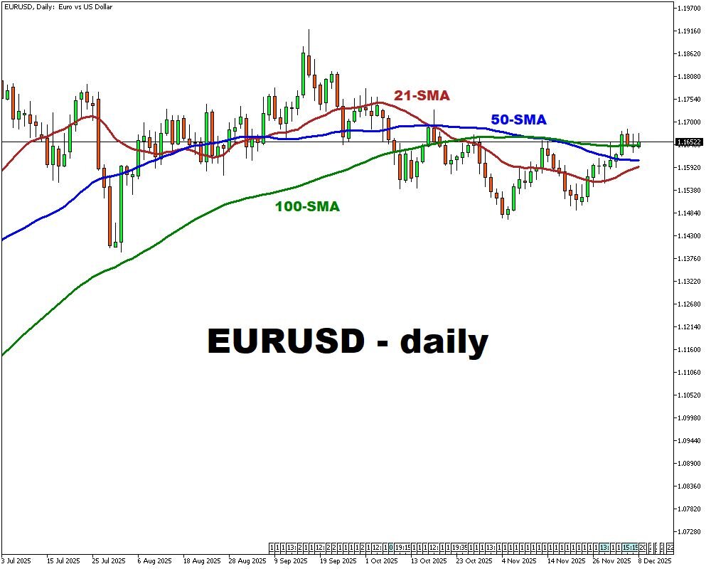 The Fed enters the meeting after two cuts this year, with officials cautious about easing too quickly amid uneven inflation progress. A clearly dovish shift may weaken the dollar and support EURUSD, while a more guarded, data-dependent tone could reinforce dollar resilience into year-end.